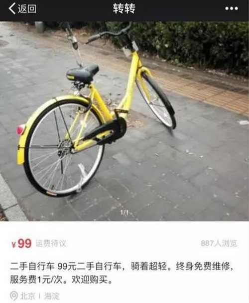 商机永远是留给那些有准备的人的。在你还骑着单车兜风时,已经有人开始公开叫卖摩拜单车,2000元一辆,诚信交易。