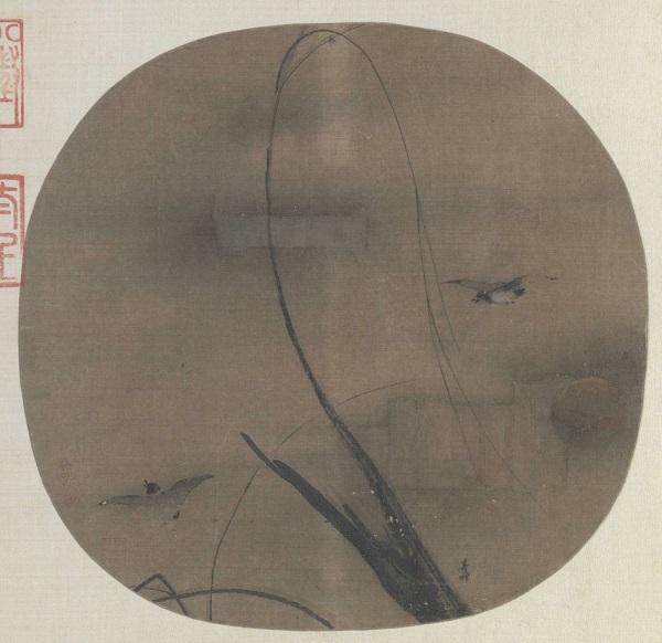 梁楷《秋柳双鸦图扇》