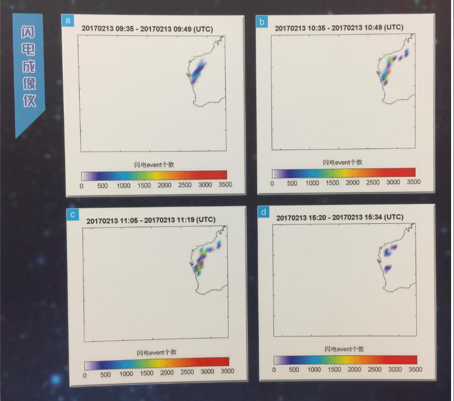 2月27日,风云四号卫星获取的全球首批静止轨道闪电探测影像发布。本次发布的闪电数据为2017年2月13日对澳大利亚西部Swan Valley地区一次强雷暴的全过程数据,该次探测完整再现了该地区强雷暴的产生-发展-结束全过程中的闪电发生情况,全过程持续约6小时。此批影像由我国去年12月发射的风云四号气象卫星闪电成像仪探测,此台闪电成像仪由中国航天科技集团公司五院508所研制,是我国首台地球静止轨道闪电探测仪器,填补了我国空基闪电探测方面的空白。