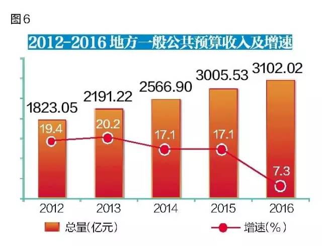 全年全省完成财政总收入4974亿元,增长5.7%,其中地方一般公共预算收入3102.02亿元,增长7.3%。在地方一般公共预算收入中,税收收入2122.89亿元,增长7.7%。全年财政支出6453.07亿元,增长5.0%。
