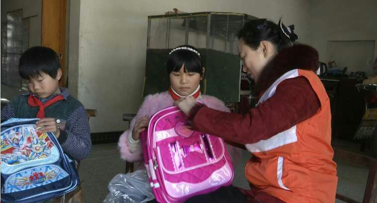活动当天,新洲区人社局的志愿者来到留守儿童高婧杰小朋友的家,为她送去新书包。小婧杰在镇上读五年级,爸爸妈妈常年在外务工,家里靠爷爷奶奶照顾,现在的书包很破旧,用了两年还舍不得换掉。拿到新书包,小婧杰显得特别开心。