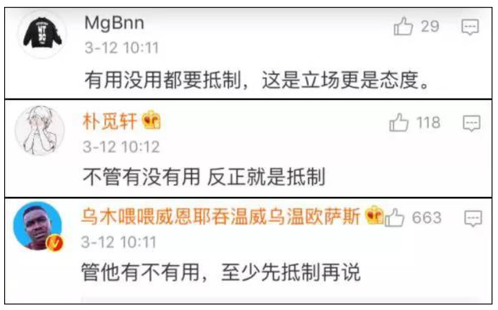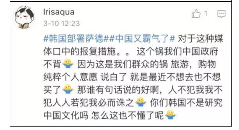 不少中国网友看过这些数据之后,表示要继续抵制韩国部署萨德。