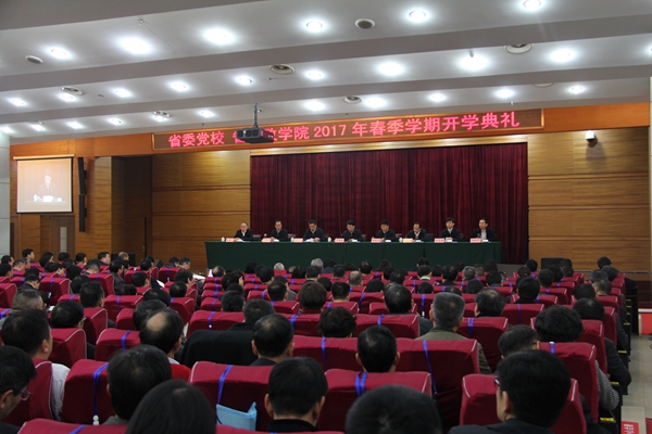 3月1日,省委党校(省行政学院)举行春季主体班开学典礼。省委常委、组织部部长、省委党校校长于绍良出席开学典礼,并作题为《旗帜鲜明讲政治 坚定不移推进全面从严治党》的辅导报告。省委党校、省行政学院常务副校(院)长陶良虎主持开学典礼。省纪委派驻省委组织部纪检组组长刘刚,省人社厅党组成员、省公务员局局长汤同新,省委党校、省行政学院副校(院)长刘光远、肖卫康、张继久,校委委员、教育长马跃珍出席开学典礼。