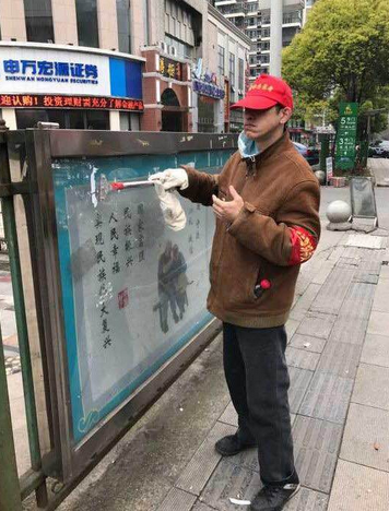长江云报道 自3月21日以来,在武昌区中南街洪山坊社区,45岁的贾勇开始了他的人生第一份工作——在社区做清除“牛皮癣”的义工。而在他身后不远处,一位花甲之年的老人关切地“跟踪”,望着这一切。原来,这位老人是贾勇的父亲——75岁的贾继辉。贾爹爹说:“担心儿子干不来,所以跟着,发现儿子完全可以胜任,也就放心了。”