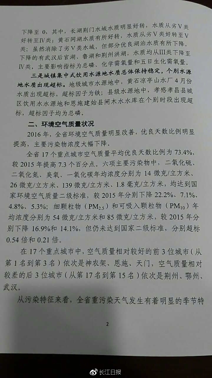 今天上午,2016年湖北省环境质量状况发布,对去年湖北省的水环境和空气质量环境都做了详细说明。