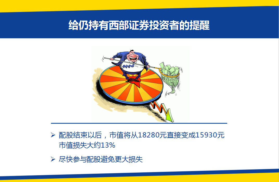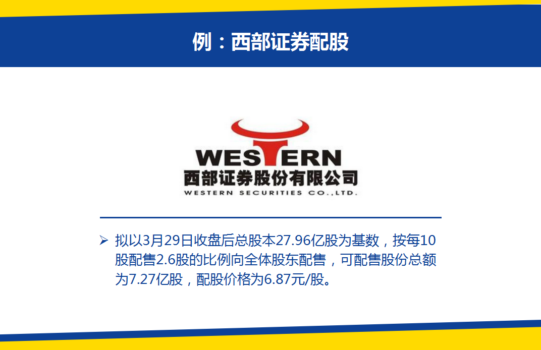 例如本次西部证券配股,拟以3月29日收盘后总股本27.96亿股为基数,按每10股配售2.6股的比例向全体股东配售,可配售股份总额为7.27亿股,配股价格为6.87元/股。按道理说能以6块多的价格买到公司股票,不是一件好事情么?为什么股价还要跌呢?