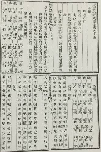 但依乾隆《钦定诗经乐谱全书》卷一及卷十五所载演奏谱可知,奏诗时正是诸器并作的。钟磬琴瑟音皆不同,所以才能相和相发,我以为这符合演出之实际。而琴在具体演出时如何与诸器相配合,也由此可以一目了然。