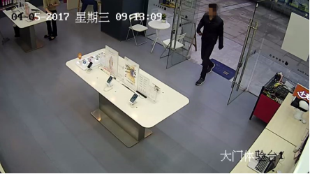 (图为嫌疑人将手机销赃视频监控截图)