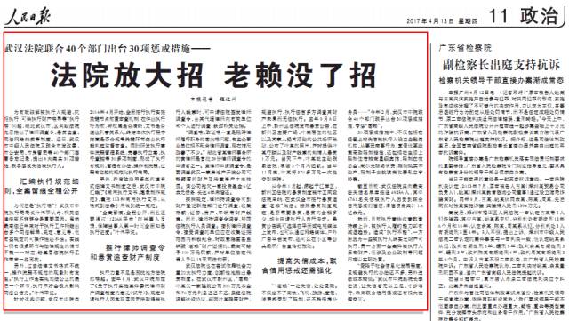 这不,今天的《人民日报》政治版,就点名表扬咱武汉法院联合40个部门放出的大招啦!