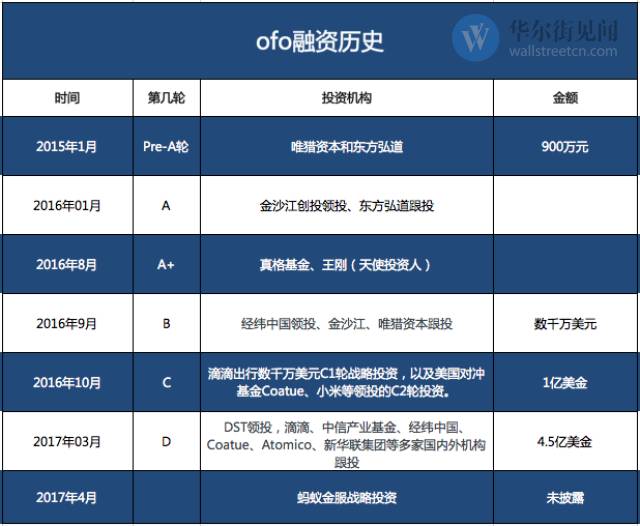 ▲ofo的主要融资历史(略有删减)(数据来源:华尔街见闻)