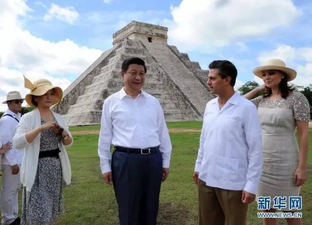 △ 2013年6月6日,为推进中墨两个文明古国的文化交流,习近平应培尼亚总统邀请参观奇琴伊察玛雅文明遗址。新华社记者饶爱民摄