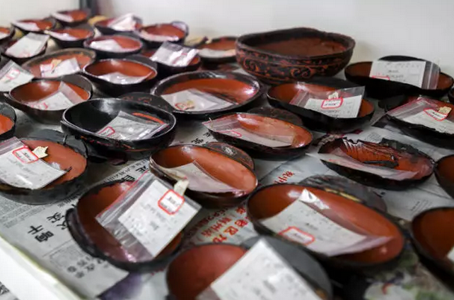 后续工程也很繁复,文物修复不能用化学漆,必须用天然漆反复调制,按照传统工艺进行髹漆。每涂一遍漆都要干燥至少一个星期,然后涂第二遍漆,反反复复上六遍漆。