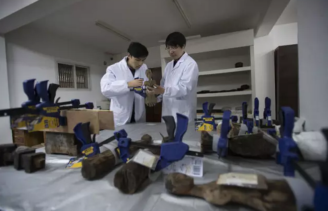 毕业于武汉大学高分子化学专业,吴顺清在同行研发的饱水文物脱水技术基础上,进一步创新,使用复合乙二醛脱水技术,不仅有效将出土漆木器进行脱水,保持木文物原有形状和颜色,而且后期保护条件也较其他脱水方法更便于长期保存。