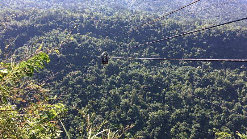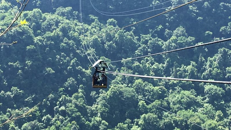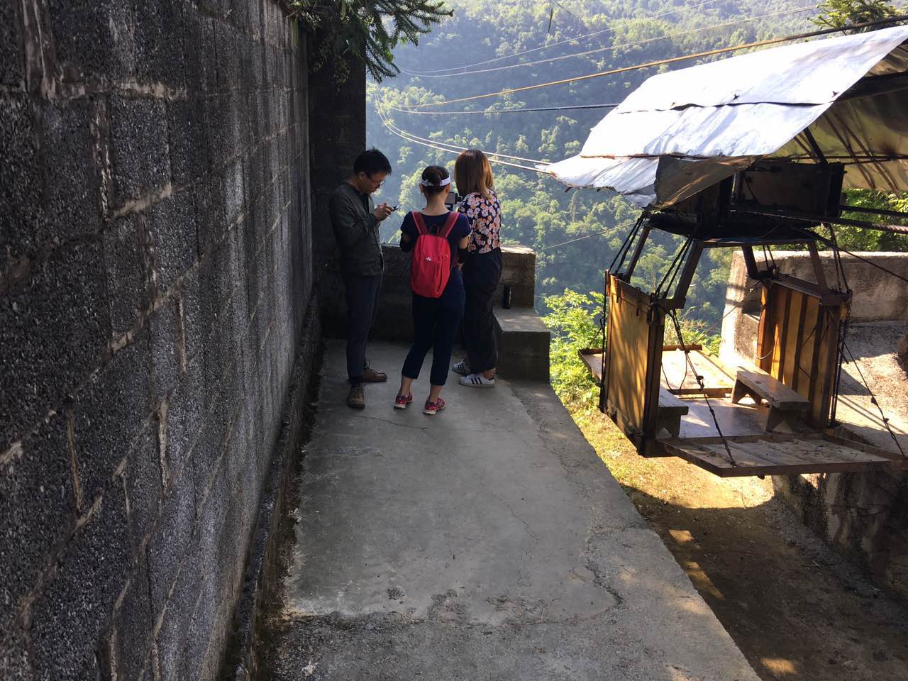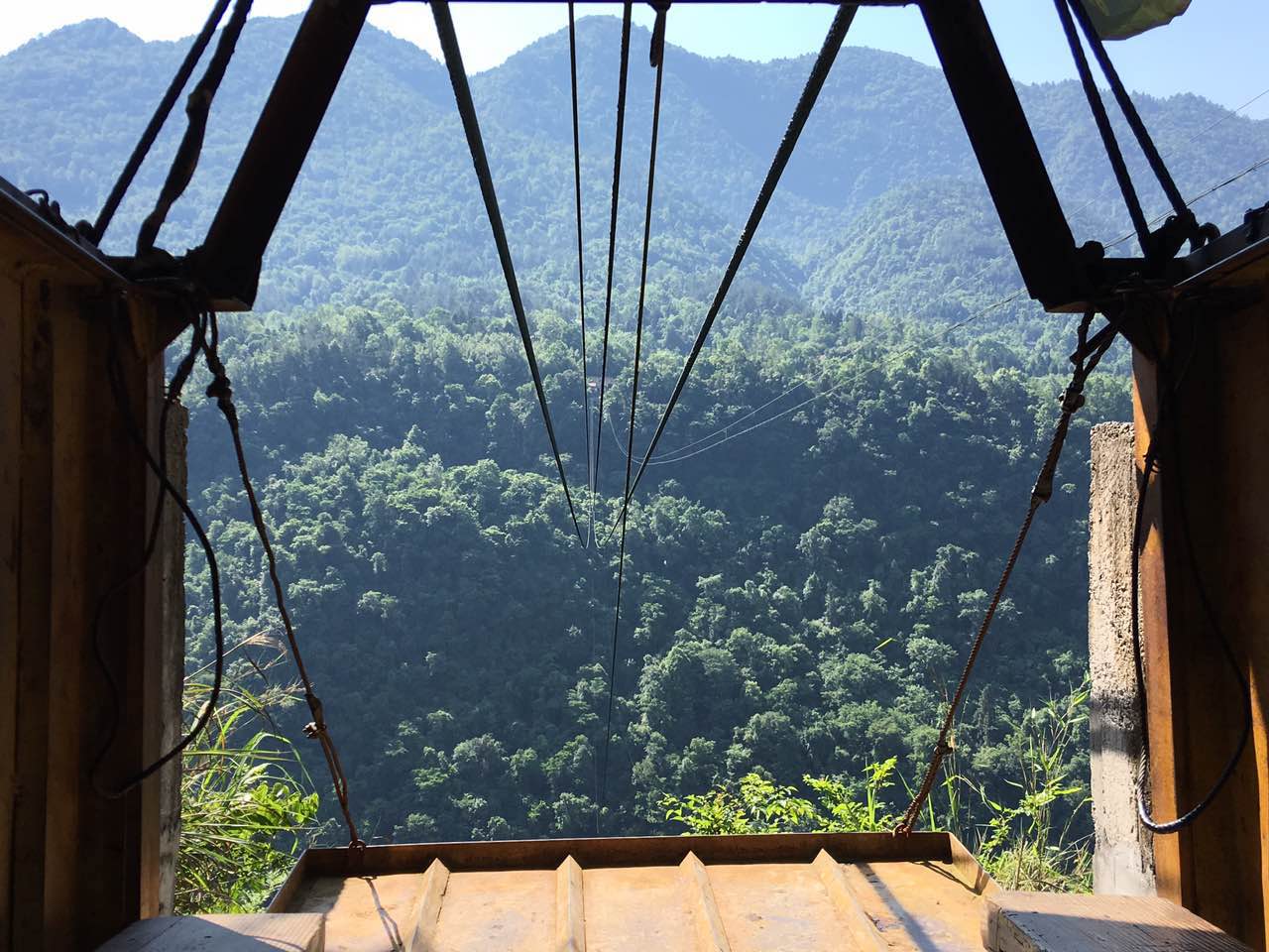 直播组从备受关注的渔山索道出发,体验了一把曾经的客运索道,但如今却仅作运货使用的索道,在数500多米的高空上,直播组一行坐着索道跨过相距700多米的两座山峰,经过18分钟的飞跃,到达对面山顶。