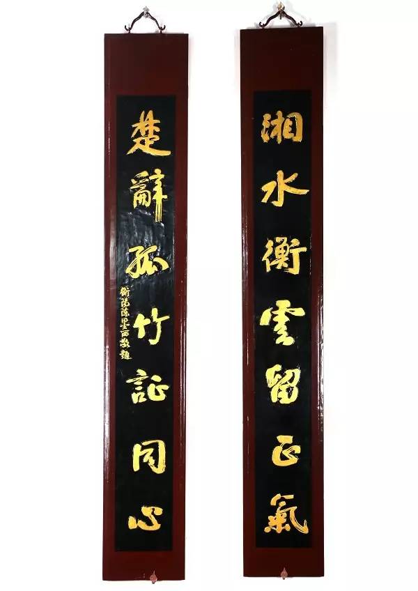 衡阳县籍名人陈墨西题。这副楹联是王船山诞辰290周年(公元1909年),陈墨西为了纪念船山先生所题写。大意指王船山虽已逝世数百年,但一身正气永留山水间,他留下的著书和绿竹,都能见证其忠肝义胆。