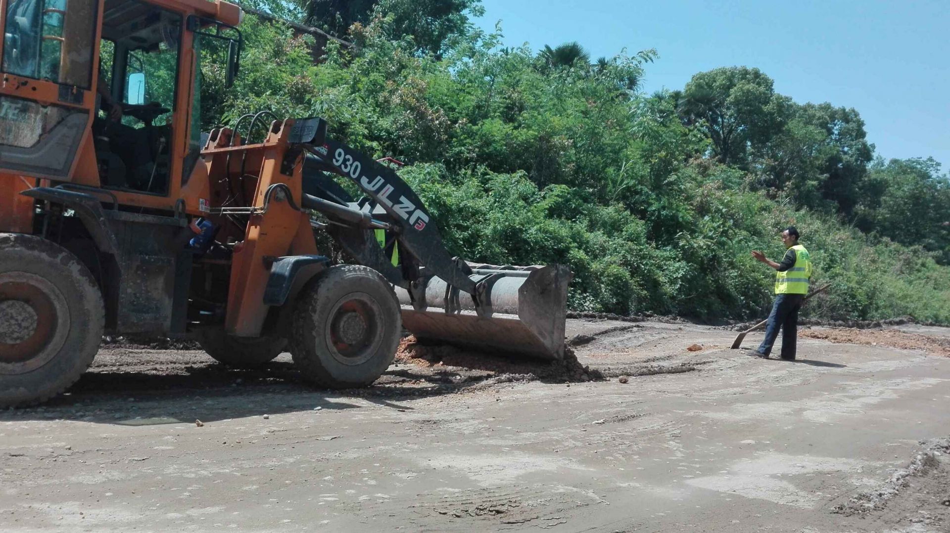 长江云报道 为确保汛期防汛抢险通道畅通,保证安全度汛,连日来武汉市洪山区城管委派出人员、机械,对武金堤堤顶公路进行应急维修。6月2日上午, 记者驱车在武金堤白沙洲水厂段至陈家闸段沿线时发现,多名道路维修人员在装载机、推土机、挖掘机、压路机配合下,清理路肩,铺筑碎石,修补破损路面。