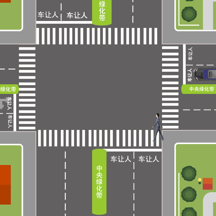 行人步入斑马线,车辆行经交叉路口转弯时,左转车辆必须让行。