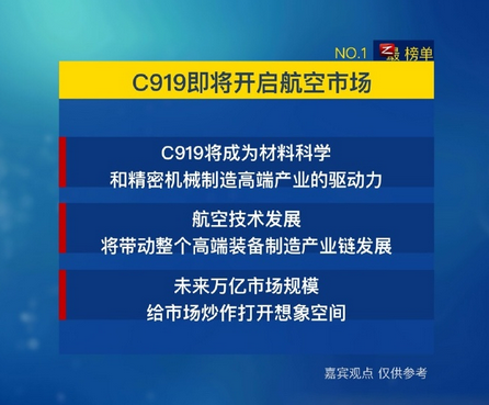 C919将成为材料科学和精密机械制造高端产业的驱动力;