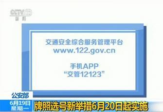 6月20日起公安部将正式启动机动车号牌管理改革,号码资源全部通过计算机系统公开向社会发放,发放方式全国统一,全部由计算机随机投放、自动增补。