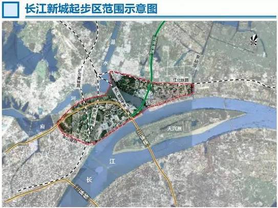 长江新城,起步区位于谌家矶-武湖区块,具体方位是:东至武湖泵站河,南至长江北岸,西至滠水河、府河,西南至张公堤路,北至江北铁路,约30到50平方公里。