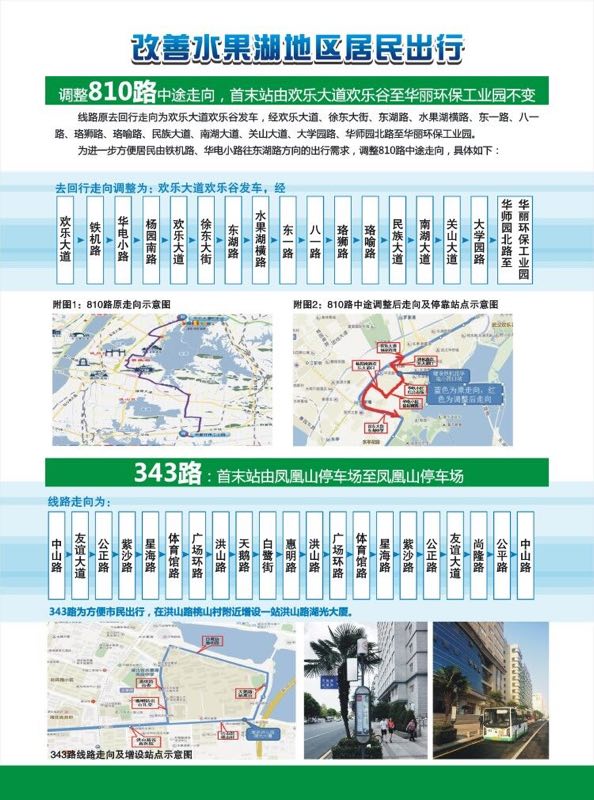 同时,增加为水果湖地区服务的微循环343路运力,配车由原7台增至12台,增加发车班次,加密发车频率,加强水果湖地区与地铁洪山广场站的衔接,方便市民出行。