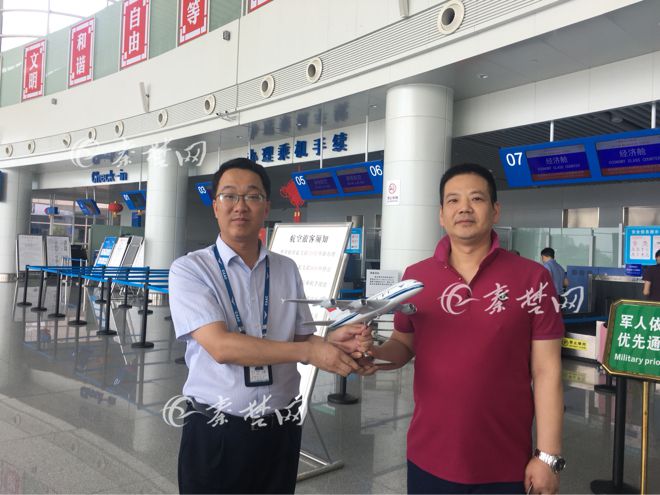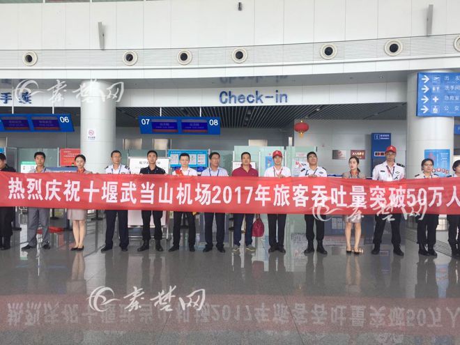8月6日下午1时,武当山机场2017年旅客吞吐量达50万人次,郧西旅客周先生此次购票赴武汉,幸运的成为第50万名乘客。