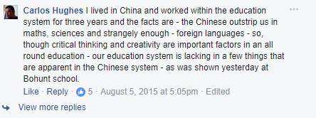 所以,虽说批判性思维和创造力在教育中很重要,但我们的教育系统已缺乏许多中国教育所具备的新特点——就像纪录片里这所学校所展现的一样。