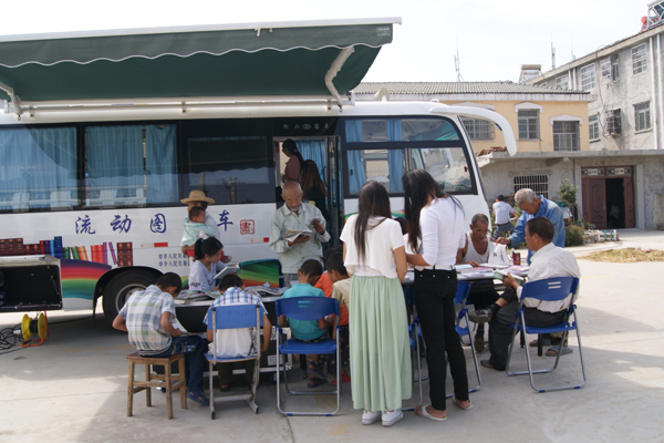 问渠那得清如许,为有源头活水来!为了发挥汽车图书馆的知识传播和学习教育宣传作用,扩大公益文化服务的阵地影响,我们经常利用流动图书车,同县科技局、卫生局、教育局、县青年黄梅戏剧团、县文化馆等单位一起举办送文化下乡活动,将汽车图书馆开到了田间地头,将老百姓喜闻乐看的书籍和电影、视频资料等送到他们的面前手中,并多次开展了送“精准扶贫”流动图书下乡活动,极大的方便了基层读者,受到了基层群众和服务单位的一致好评,老百姓纷纷夸赞我们送来的是“精神的食粮,行走的书香”。黄冈电视台、湖北日报手机报、鄂东晚报、今日团风等媒体多次对我们开展的汽车图书馆服务活动进行了报道。