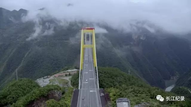主缆跨中设置刚性中央扣,为国内首次采用,与常规设置纵向阻尼器相比,既有效提高了桥梁纵向刚度及抗风稳定性、改善了结构受力特性。借助火箭弹发射先导索过峡谷,开创了国内乃至世界建桥史上的先河。