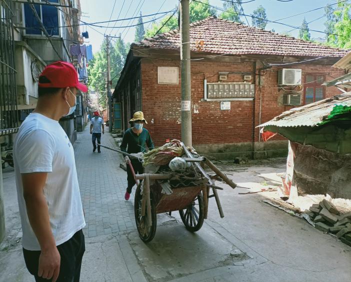 辖区内玻璃钢、林机为老旧小区,无物业、无业委会等,部分居民将杂物乱堆乱放随处可见,给居民生活带来不便,影响小区整体环境面貌。6月5日和6日一大早,工作人员、下沉党员及志愿者们兵分三路,带上扫把、手套、铁锹等对楼道内的乱堆放杂物进行清理,并向居民宣讲垃圾分类的环保小知识等相关政策。活动中,大家不怕脏、不怕苦、不怕累,积极发挥了党员、志愿者的模范带头作用,展现党员同志们勇于冲在前面、敢于抢挑重担的精神风貌。下沉党员、志愿者纷纷表示:社区人手有限,我们作为社区的一份子,一定会积极响应社区号召,为社区、为武汉贡献自己的力量!