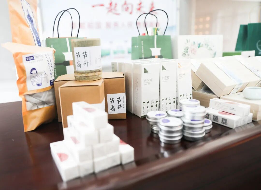 蕲艾条、足浴包、中药香囊、校训书签……在明德楼大厅展台上,学校大学生创新创业成果有序陈列,琳琅满目、特色鲜明。淡淡青烟缭绕、香气弥漫的江城四季主题线香:春樱、夏艾、秋桂、冬梅,含有益母草精华的护手霜,取材中药材鸡血藤手工制作的鸡血藤镯等产品……创新创业团队指导老师代表朱永山和学生代表金路一一进行展示。这些产品将中医药元素融入到日常生活用品设计之中,生动诠释了中医药之美。