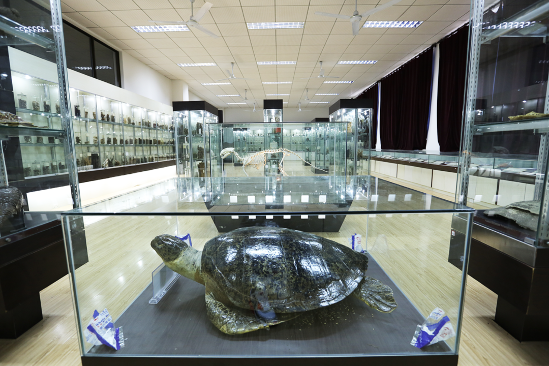 “这么多中药材标本,真是大开眼界。”一走进学校中药标本馆,主持人就惊叹不已。药学院院长吴和珍教授介绍,中药标本馆始建于1984年,有中药材陈列室、中药饮片陈列室、中药矿物陈列室、药用植物浸制标本陈列室、药用植物腊叶标本陈列室及中药性状实习室等6个陈列室。镇馆之宝是一具豹骨,国家已于2006年禁止豹骨入药,因此该豹骨仅用于展示。