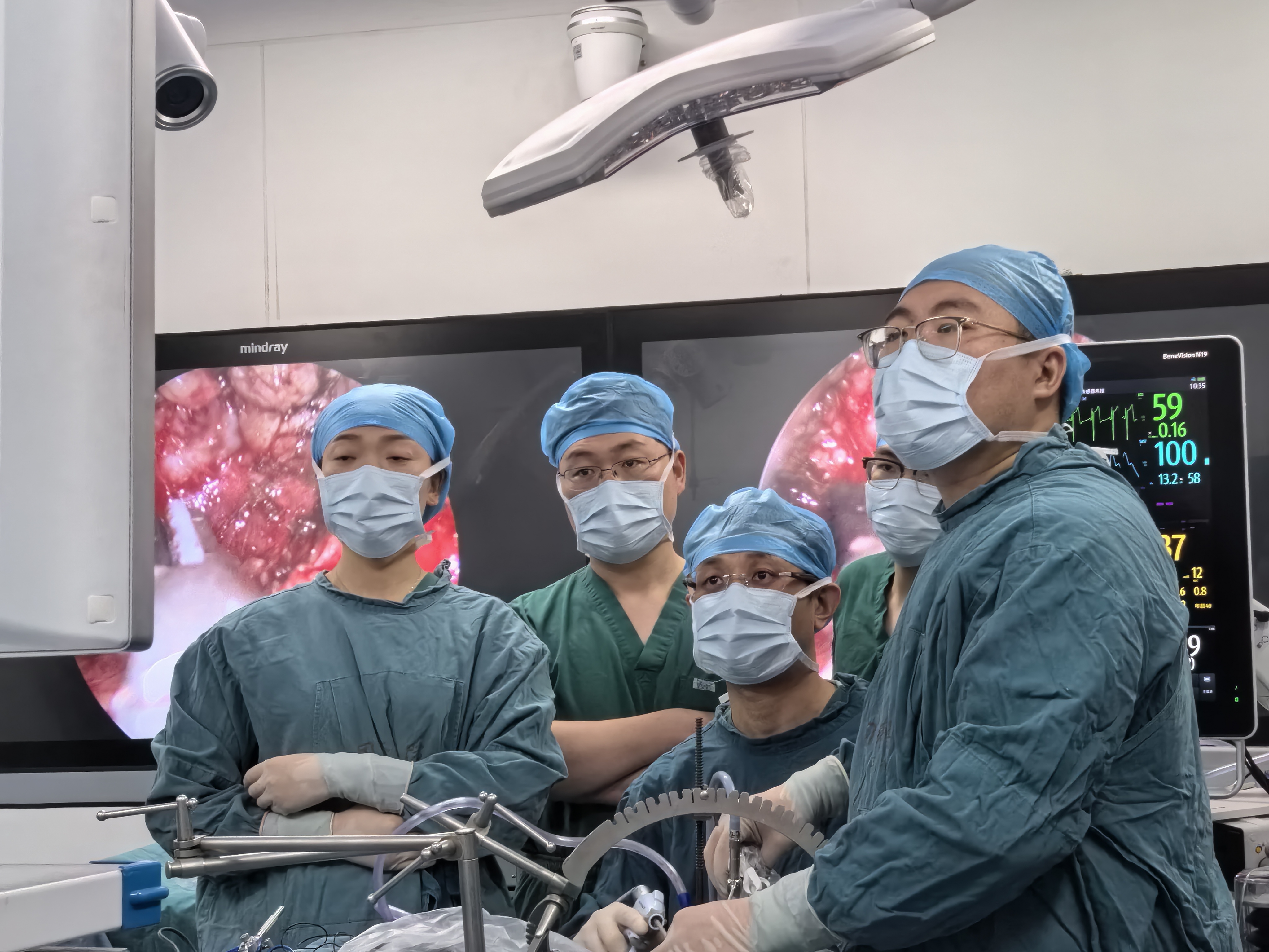 但考虑到庞先生的担忧,同济口腔颌面团队决定微创手术为庞先生摘除腮腺肿瘤。4月27日,秦旭医生团队为庞先生实施了微小隐蔽切口下应用内窥镜辅助实施腮腺肿瘤切除手术。术中,医生团队仅在庞先生耳后做了一个3厘米小切口,随后使用腔镜手术器械通过“洞口”一点点探入,小心避开面部神经,最终将腮腺肿瘤完全取出。整个手术持续了1个小时,术后庞先生没有出现神经损伤症状。