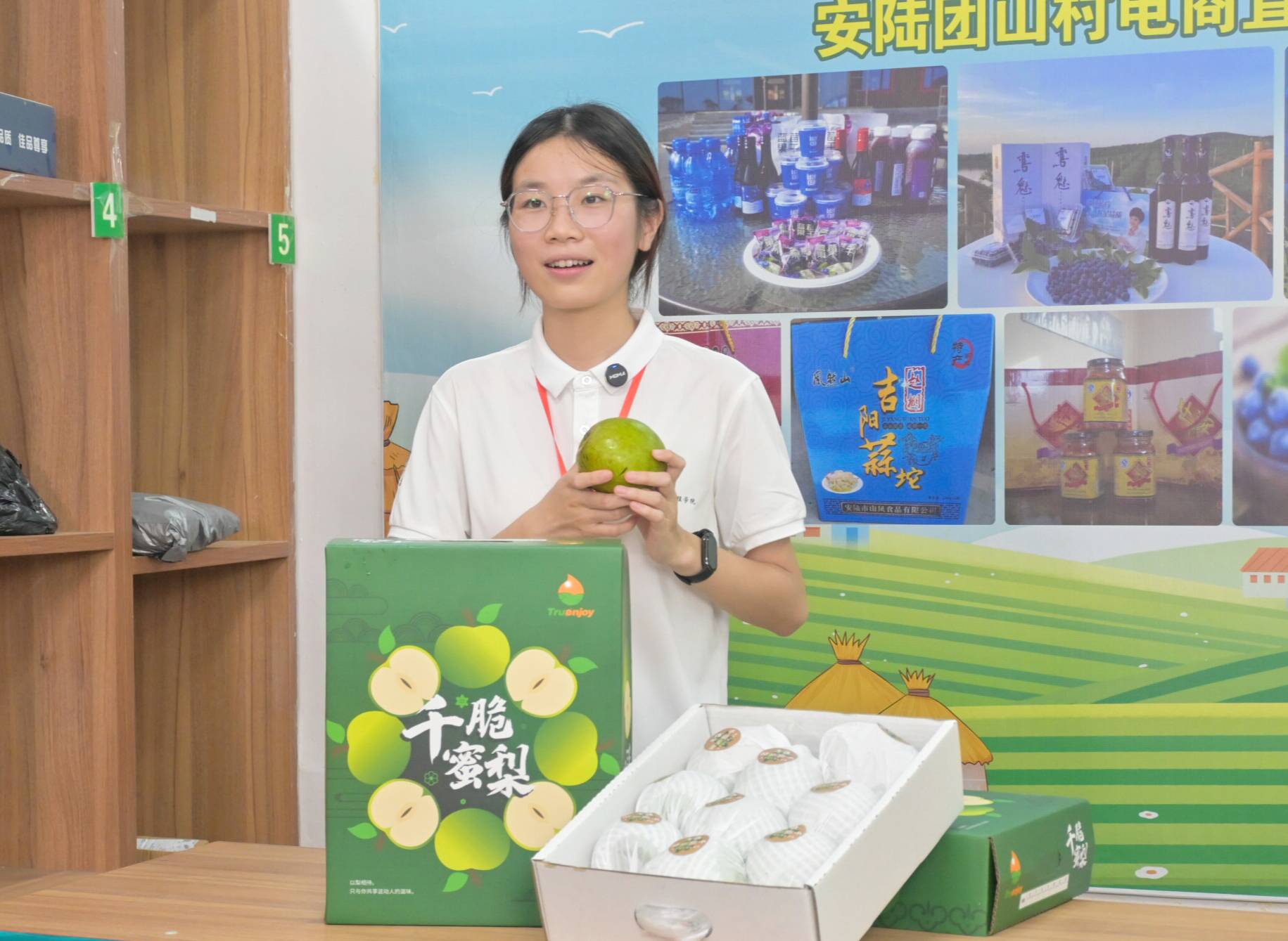 “这款产品是产于安陆市赵棚镇的‘千脆蜜梨’,口感香甜脆口,产品的产地与产业链我们都参观过,纯天然并且干净卫生。”团队成员舒丁玲在直播间说道。她向网友介绍当地的特色农产品“千脆蜜梨”,并通过亲口试吃、展示产品质检报告等方式,向网友们售卖。