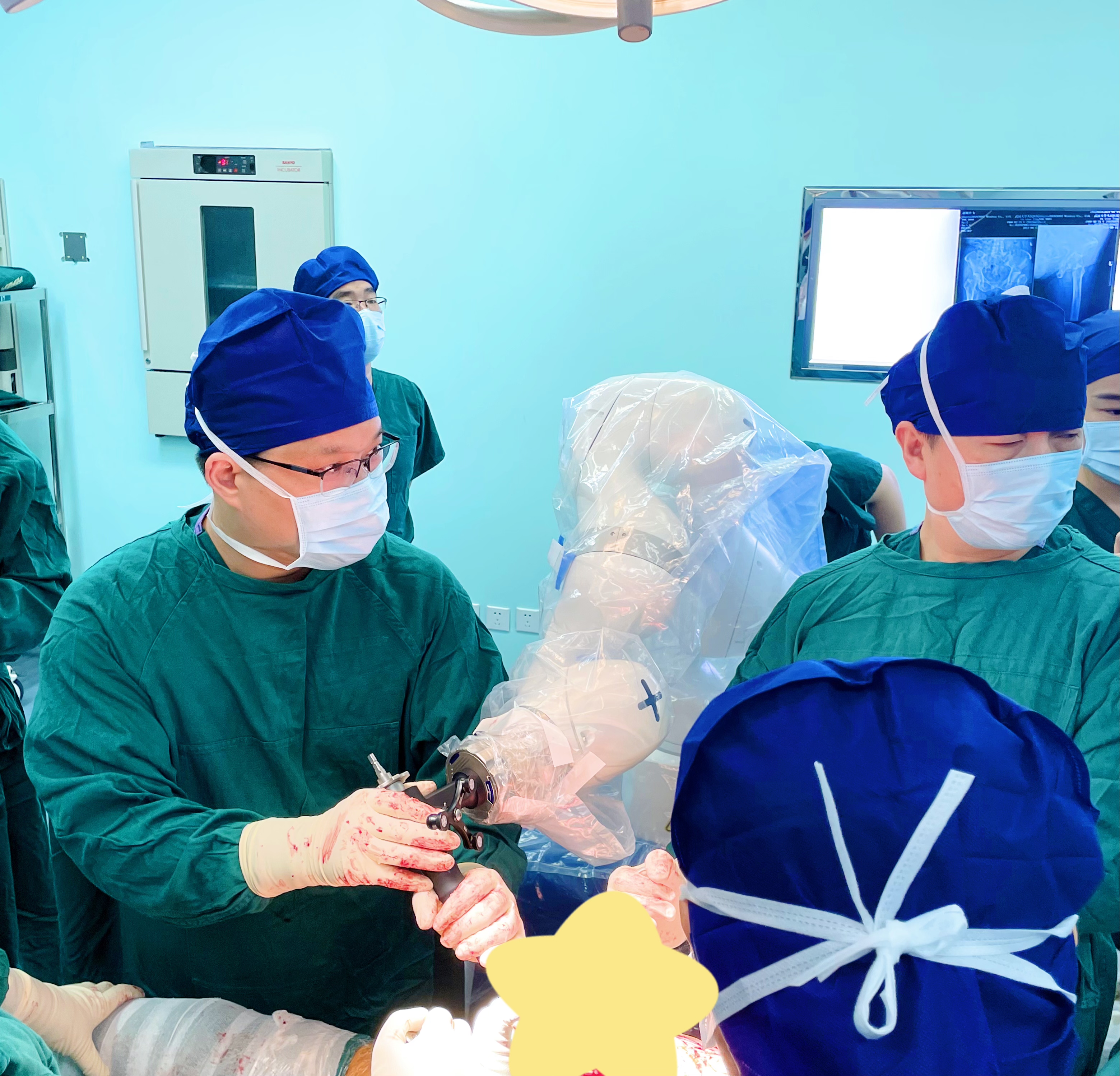 专家团队全面评估李女士病情后,确定了手术路径和手术方案。15日中午12时30分,在骨外科学科带头人彭昊教授的指导下,这台骨科手术机器人辅助下全髋关节置换术紧急开展。