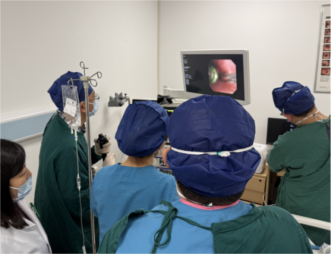 面对这场高难度“气管拆弹”战,呼吸与危重症医学科主任陈宏斌深知挑战重重:异物尖头朝上嵌顿于狭窄的基底段支气管,周围黏膜已充血肿胀;金属表面光滑且形状不规则,传统异物钳难以抓取;更致命的是,患者每一次呼吸都可能让扳手移位,稍有不慎就会引发大出血等严重并发症。