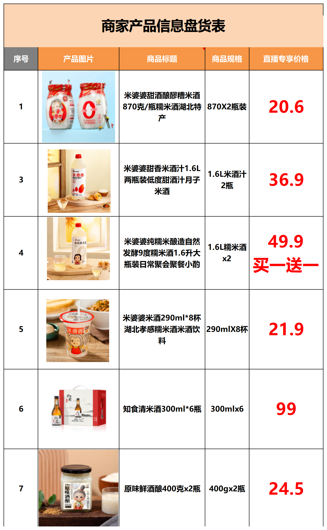 直播福利当然也少不了,为了让大家能更轻松把美味带回家,这次直播,米婆婆带来了满满的诚意!下面给大家公布本次直播米婆婆产品的价格表: