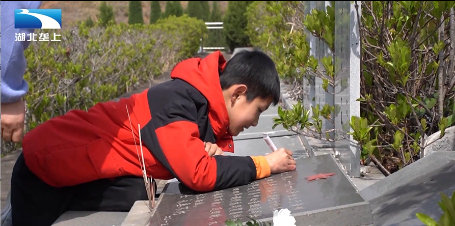 黄冈市黄州区峰火山聚福园陵内,孩子们在家长的陪同下,认真擦拭烈士墓碑,一笔一画描摹碑文,重温英雄事迹。