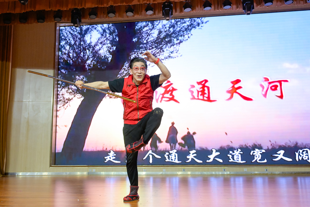 分享会上,六小龄童不仅携新书《金猴宗师》《行者》畅谈艺术人生,更以一段即兴“金箍棒舞”惊艳全场。只见他手持金箍棒,身姿矫健如风,眨眼、挠痒、远眺……每一个动作都精准复刻了“齐天大圣”的灵动与傲气,仿佛穿越时空将观众带回《西游记》的奇幻世界。现场学生直呼:“这才是童年记忆里的美猴王!”