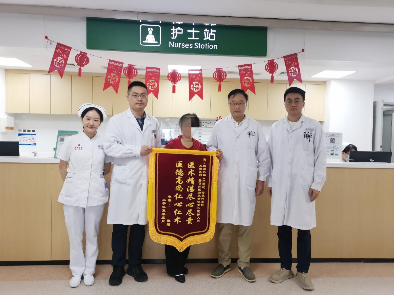 手术顺利完成后,在医护人员的悉心照料下,王女士的身体状况逐渐好转。24小时内实现自主翻身及坐立;术后 5 天,开始过渡到半流质饮食,得益于精细的管道管理与并发症预防措施,患者未出现胰瘘、胆瘘等常见并发症,术后13天即达到出院标准。出院时,王女士和家人对科室的医疗技术和服务质量赞不绝口,并送上锦旗致谢医护团队。