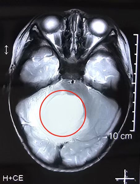 5月中旬,湖北仙桃2岁10个月的晨晨(化名)突然出现间断性的恶心呕吐。起初,家人以为只是吃坏了东西,但连日来,这样的症状不仅反复出现,还不断加重。当地医院头部磁共振检查显示“脑干背侧、四脑室巨大肿瘤性病变”,同时伴有脑积水,考虑恶性髓母细胞瘤可能性大,病情非常严重。为寻求一线生机,一家人慕名找到武汉大学人民医院神经外Ⅲ科副主任徐海涛教授。