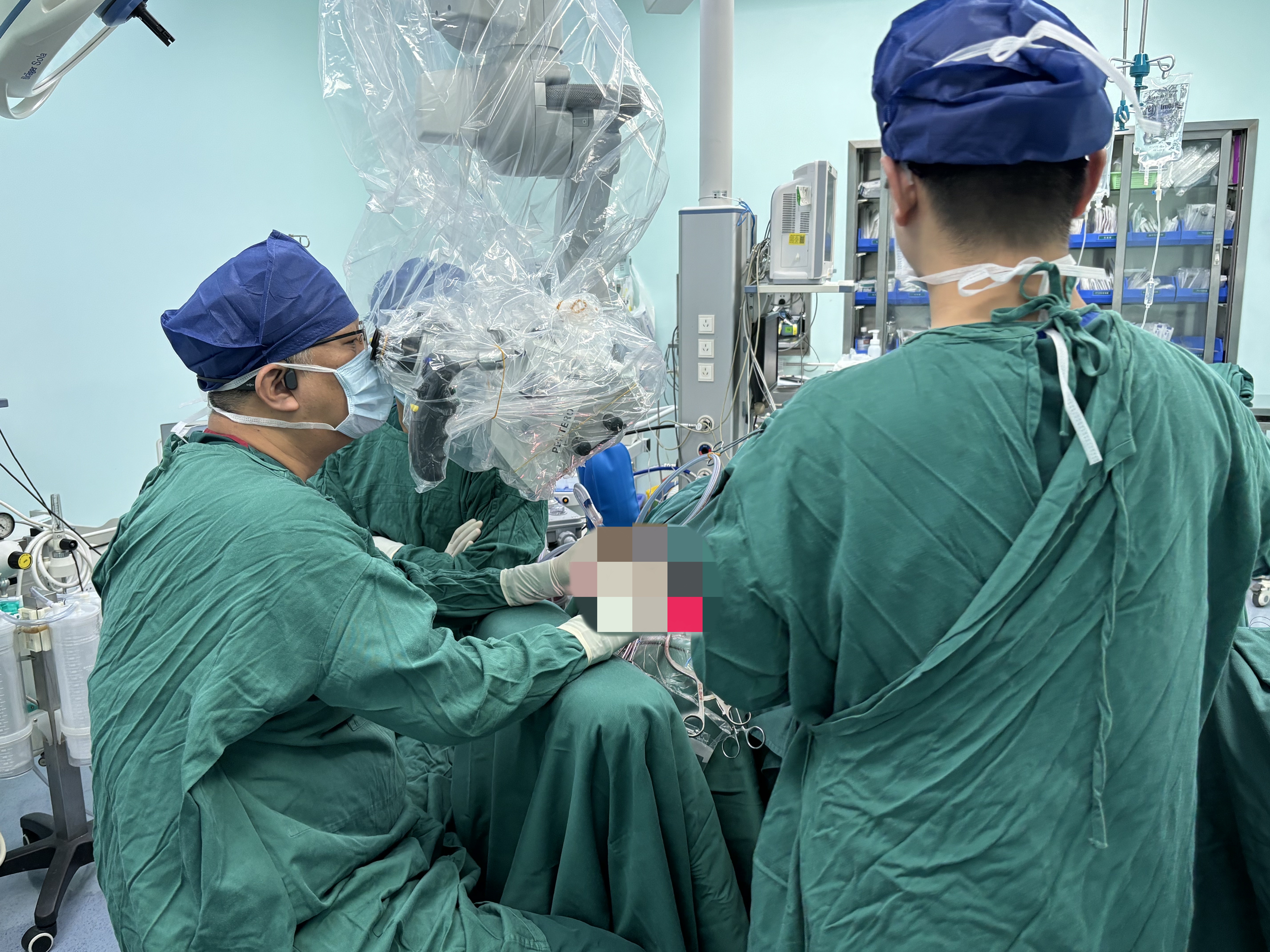 5月 20日,在麻醉科主任夏中元教授、吴迪医师团队的麻醉和监测下,神经外Ⅲ科徐海涛教授带领朱晓楠、刘骏辉副主任医师团队,在手术显微镜下高度专注、精细操作,历经11小时终于完整切除肿瘤。