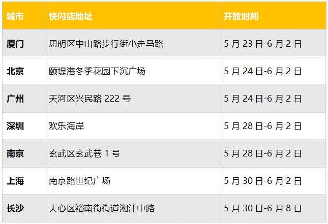 5月23日起至6月8日,厦门、北京、广州、深圳、南京、上海、长沙七城将陆续开启“麦当劳喜欢您来玩”主题快闪店。快闪店以Eva Cremers创作灵感为核心,设置互动装置、艺术打卡区与游玩空间,为小朋友和大朋友带来更具参与感的节日体验。