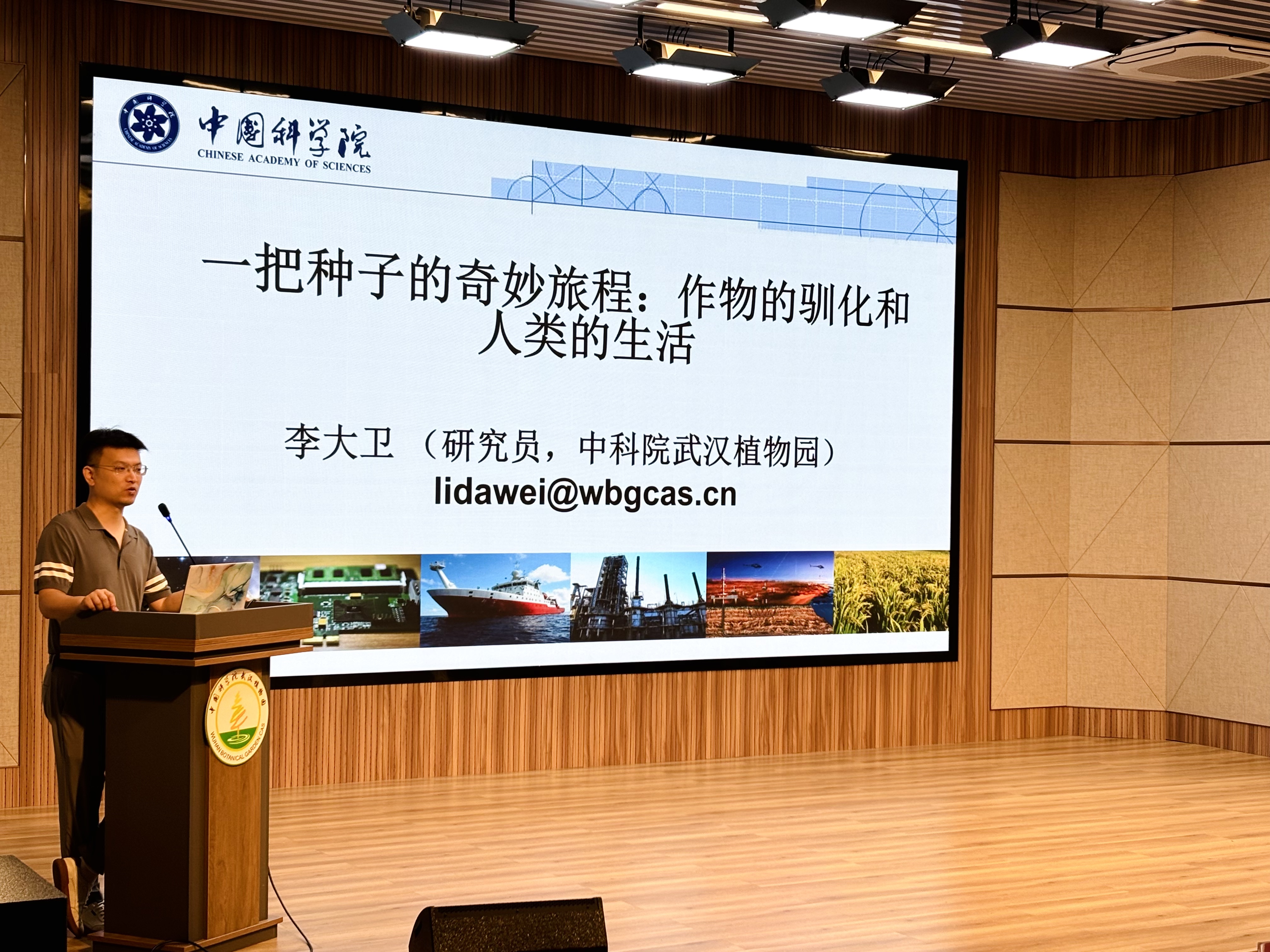 武汉植物园猕猴桃遗传改良与种质创新研究组长李大卫研究员为营员们带来了开营第一课。他以《一把种子的奇妙旅程:作物的驯化和人类的生活》为主题,通过小麦、西瓜、水稻等作物驯化史的生动案例,阐释了人工育种与基因工程如何推动农业变革。他详细讲解了武汉植物园在猕猴桃育种领域取得的突破性成果,包括‘东红’、‘金艳’等45个具有自主知识产权的猕猴桃新品种,充分展现了我国在作物种质创新方面的科研实力。