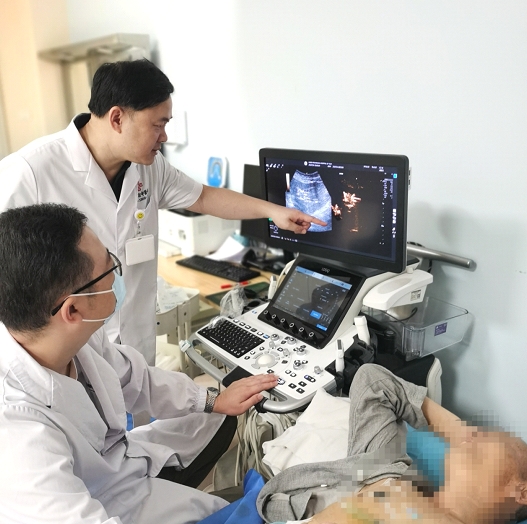 在超声影像的精准导航下,一根细如发丝的导丝正穿越直径仅3毫米的纤细胆管——这相当于在圆珠笔芯粗细的管道内完成毫米级微雕。近日,湖北省中医院肝胆外科与超声影像科团队协作,成功为一名肝门部胆管癌术后复发伴肝内多发转移的危重患者,实施了高难度超声引导经皮肝穿刺胆道引流术(PTCD),在生死边缘重建了“生命引流线”。