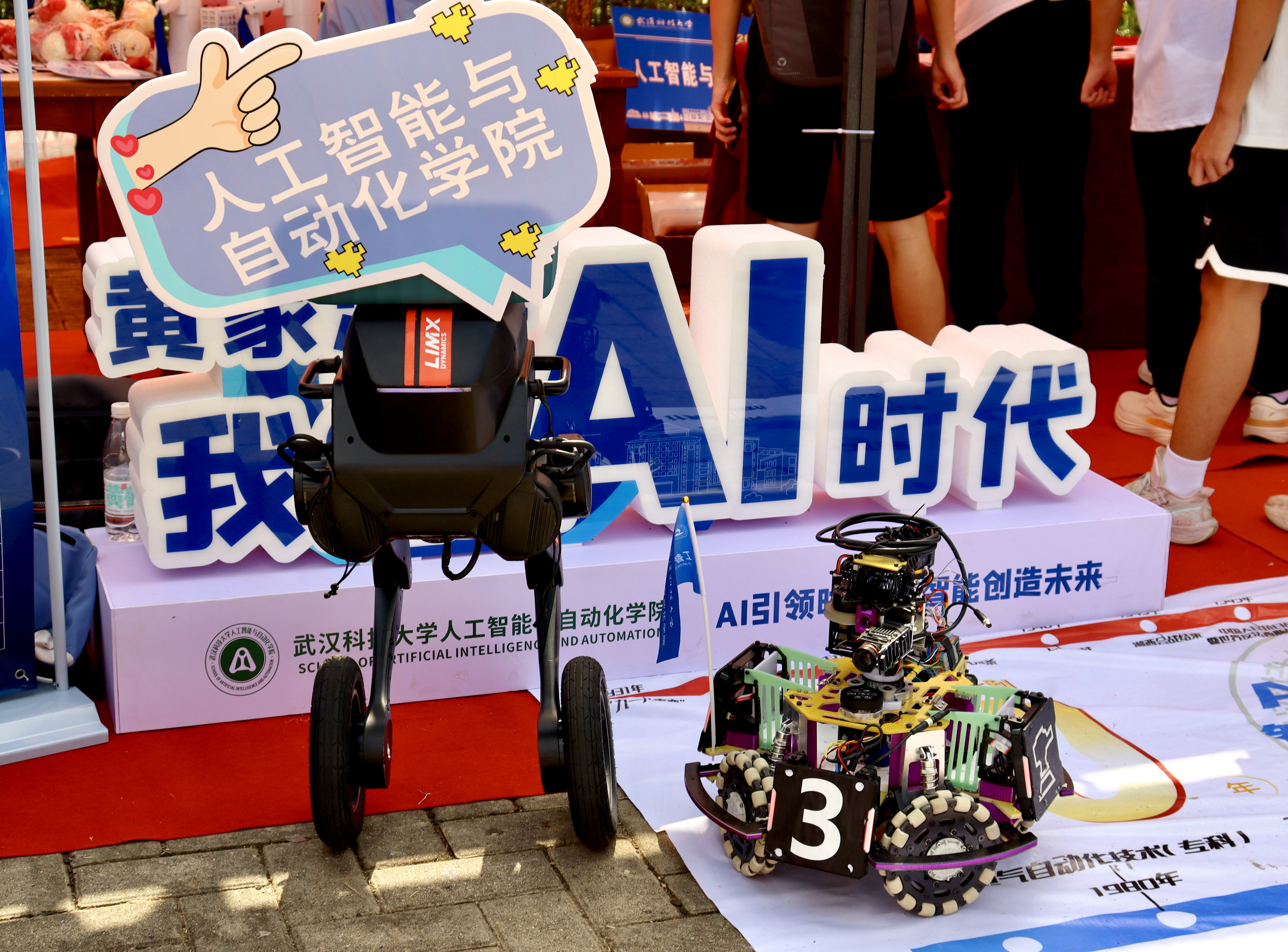 “太酷啦!这机器人还能蹲起旋转!”在武科大北园迎新点,人工智能与自动化学院展出的黑色步行机器人甫一亮相,便引来新生与家长们的阵阵惊叹。这个头顶小篮子、脚踩“风火轮”的机器人不仅能灵活地进退自如,承重上限达20斤的它还能与新生互动,帮助他们放置随身物品。团队负责人武晓健介绍,希望通过这种方式,让新生第一时间感受到科技的魅力与专业的乐趣。