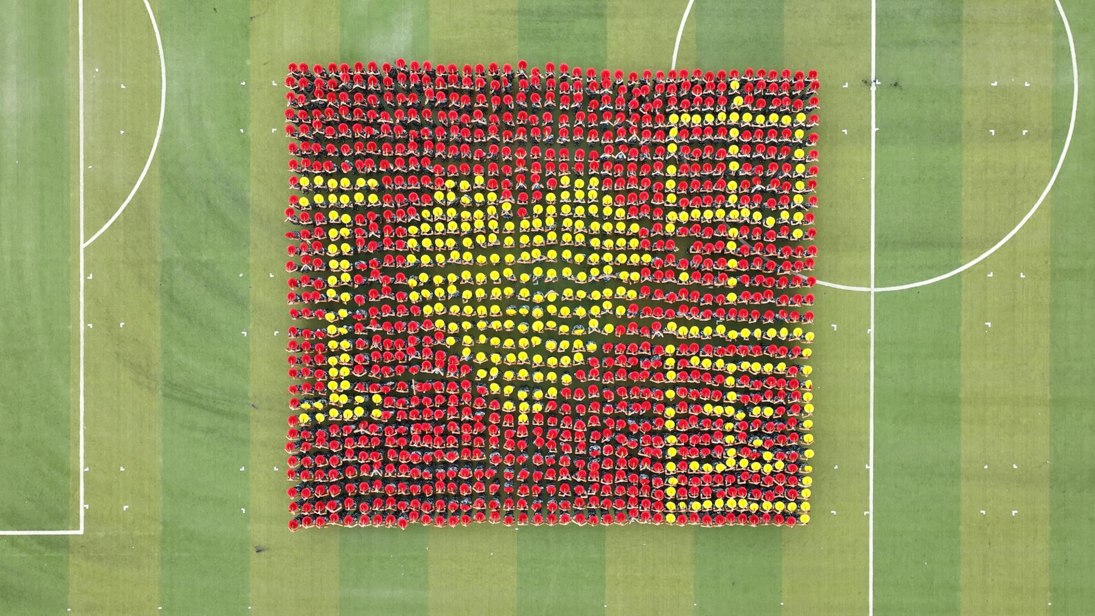 9月29日上午,武汉科技大学举行2025级学生军训总结表彰大会。由1200名新生组成的“爱国荣校方阵”手持双色彩扇,在铿锵鼓声中依次翻动,呈现“九三”“正义必胜、和平必胜、人民必胜”“我爱你中国”等图案,纪念中国人民抗日战争暨世界反法西斯战争胜利80周年。