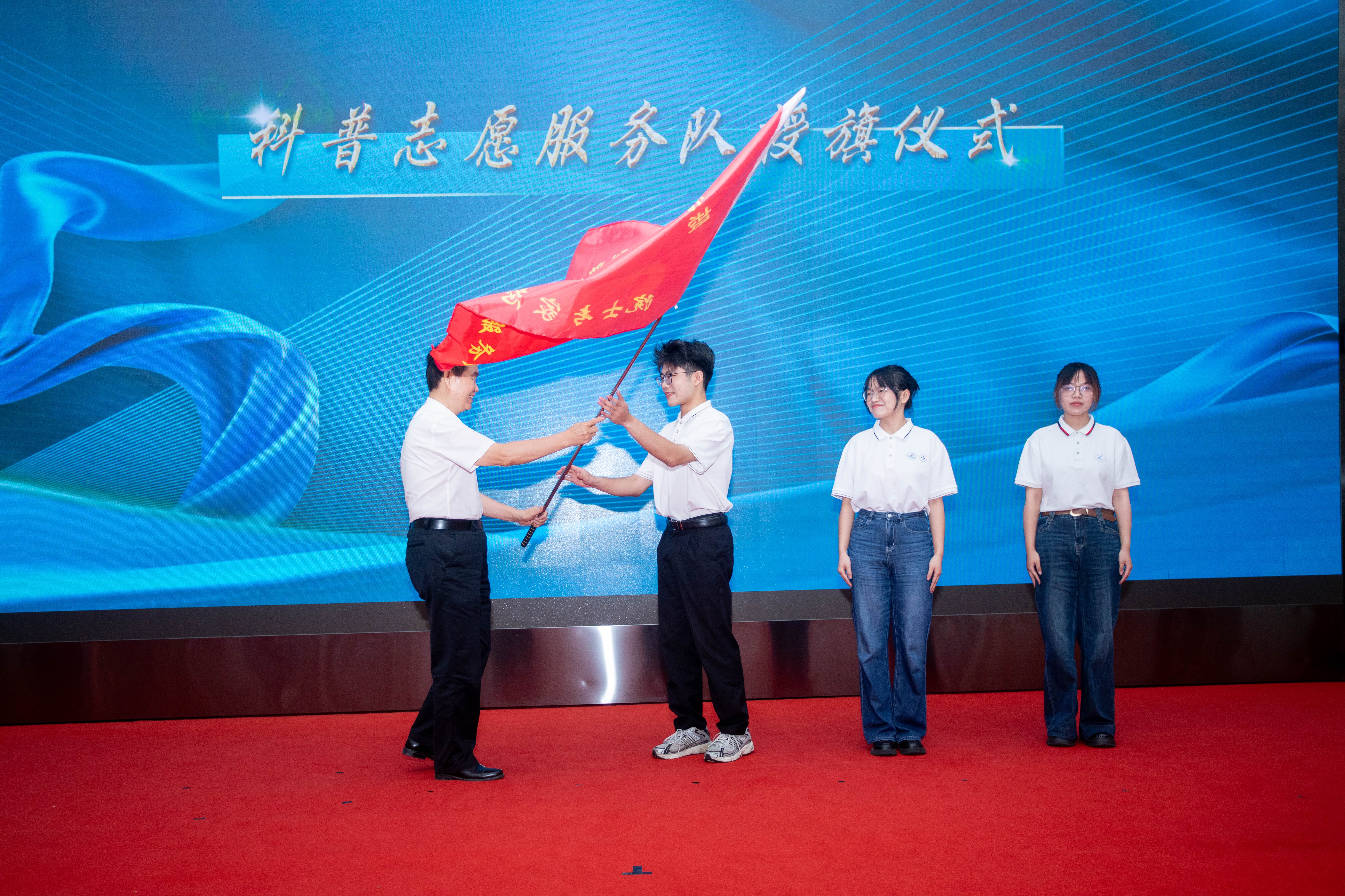活动现场举行了“陈孝平院士健康科普工作室科技志愿服务队”授旗仪式。陈孝平院士向同济医学院学生代表授旗,标志着由百余名医学生组成的志愿服务队正式成立。该团队将以校园健康宣教、科普作品创作等为核心方向,系统化开展常态化志愿服务 —— 首阶段计划深入武汉10所高校与 20 个社区,落地涵盖健康讲座、科普展陈、急救实训等形式的系列行动,把专业医学知识转化为贴近师生日常、惠及社区居民的健康守护力量,让科普服务既 "走进去" 又 "沉下去"。