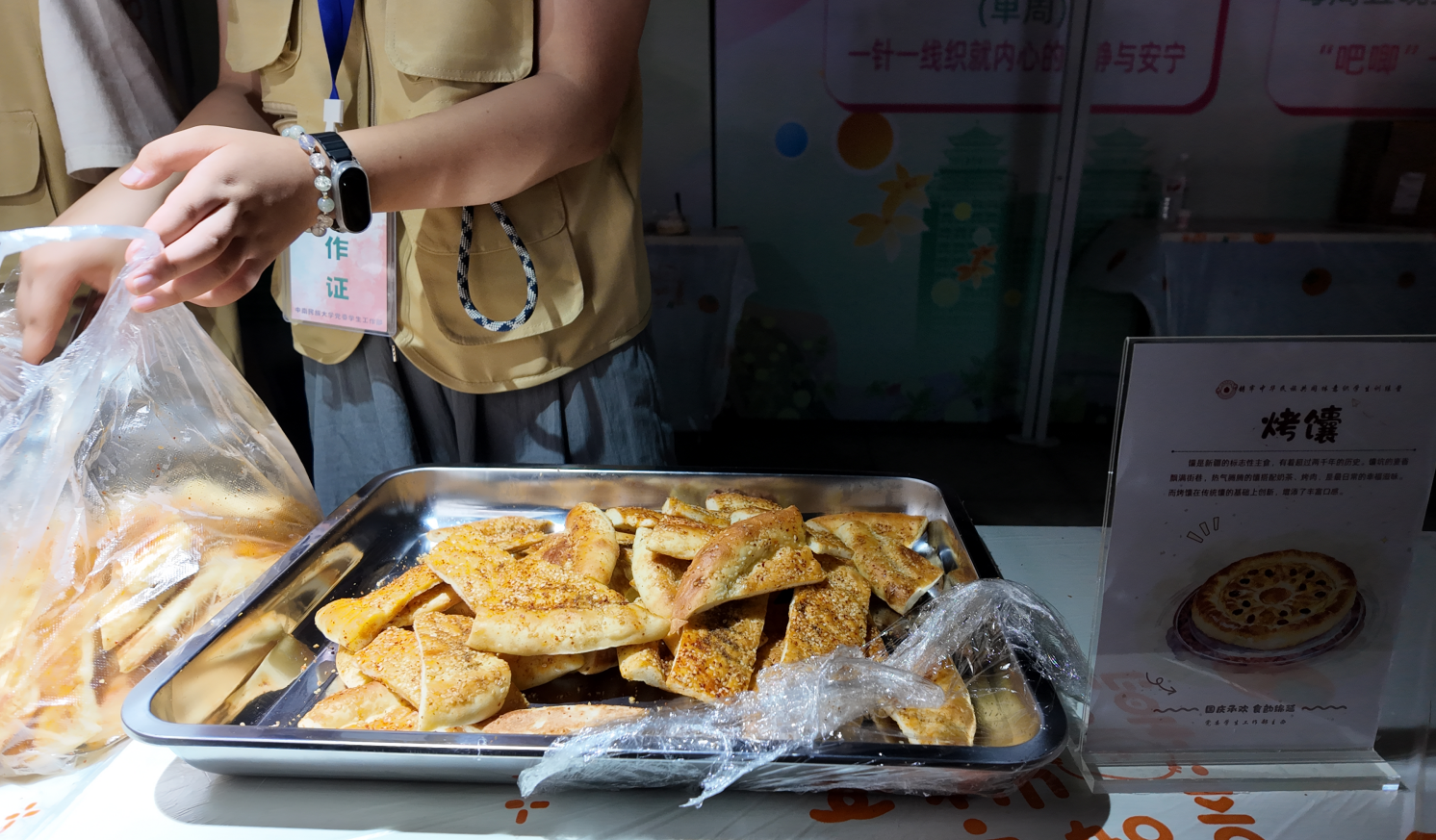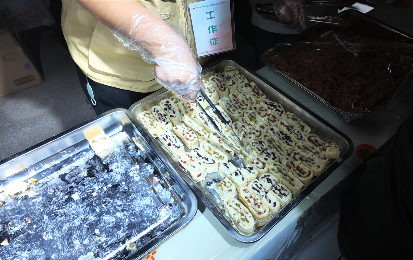 “我吃到了来自家乡内蒙古的奶皮卷!软糯香甜,奶味儿十足!特别正宗。”民族学与社会学学院2023级本科生马美一一边吃着奶皮卷,一边高兴地分享道。生物医学工程学院2025级本科生赵娅齐在一旁听到后,也激动地说:“我来自云南!那个酸角汁也特别正宗!酸酸甜甜的很好喝!”大家吃着碗里的美食,都高兴地笑起来。