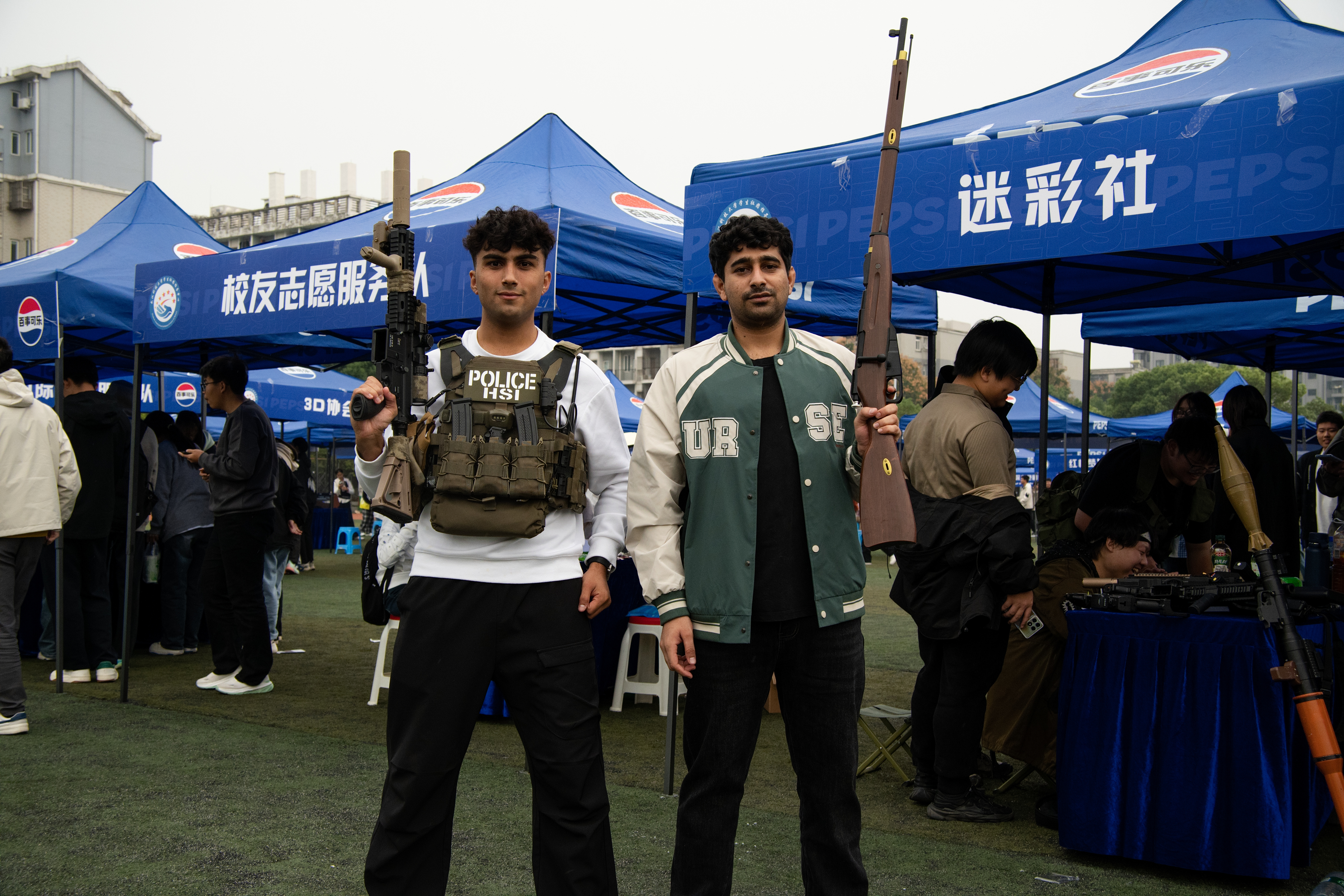 “迷彩社”的展位,是校园“硬核玩家”们的集结地。社团成员们不仅展示着高度逼真的枪械模型,还专业地讲解着背后的构造与知识。这种沉浸式体验不仅让本校学生大呼过瘾,更成功“圈粉”了来自科威特的留学生张伟(Jerry)。“能亲手触摸,还能和同好交流,这种体验太棒了,我必须加入!”张伟的当场“入伙”,正是这种专业社团跨越文化与语言吸引力的最佳证明。